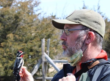 At Long Point B.O. Brian learned to identify and band migratory songbirds and raptors which is something he continued to do while volunteering at Toronto Bird Observatory. He took that knowledge and gained employment with the Central Lake Ontario Conservation Authorities and the DDSB Nonquon Outdoor Education Centre in Port Perry. From there Brian began working for the Ministry of Natural Resources as Park Naturalist for Bon Echo, Murphy's Point and Sandbanks Provincial Park. In 1995, Brian was given the suggestion to start his own migration monitoring station and with the help of Eric Machell they started the Prince Edward Point Bird Observatory now celebrating 30 years of songbird migration research.